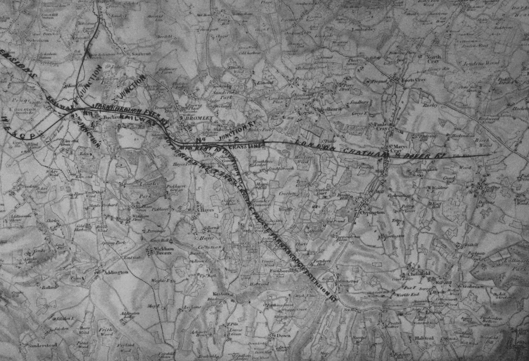 The company intended to extend their line from Beckenham through to Croydon, but that never happened. However extensions were built to Addiscombe, to Selsdon south of Croydon on the Brighton main line, and to Hayes via West Wickham.