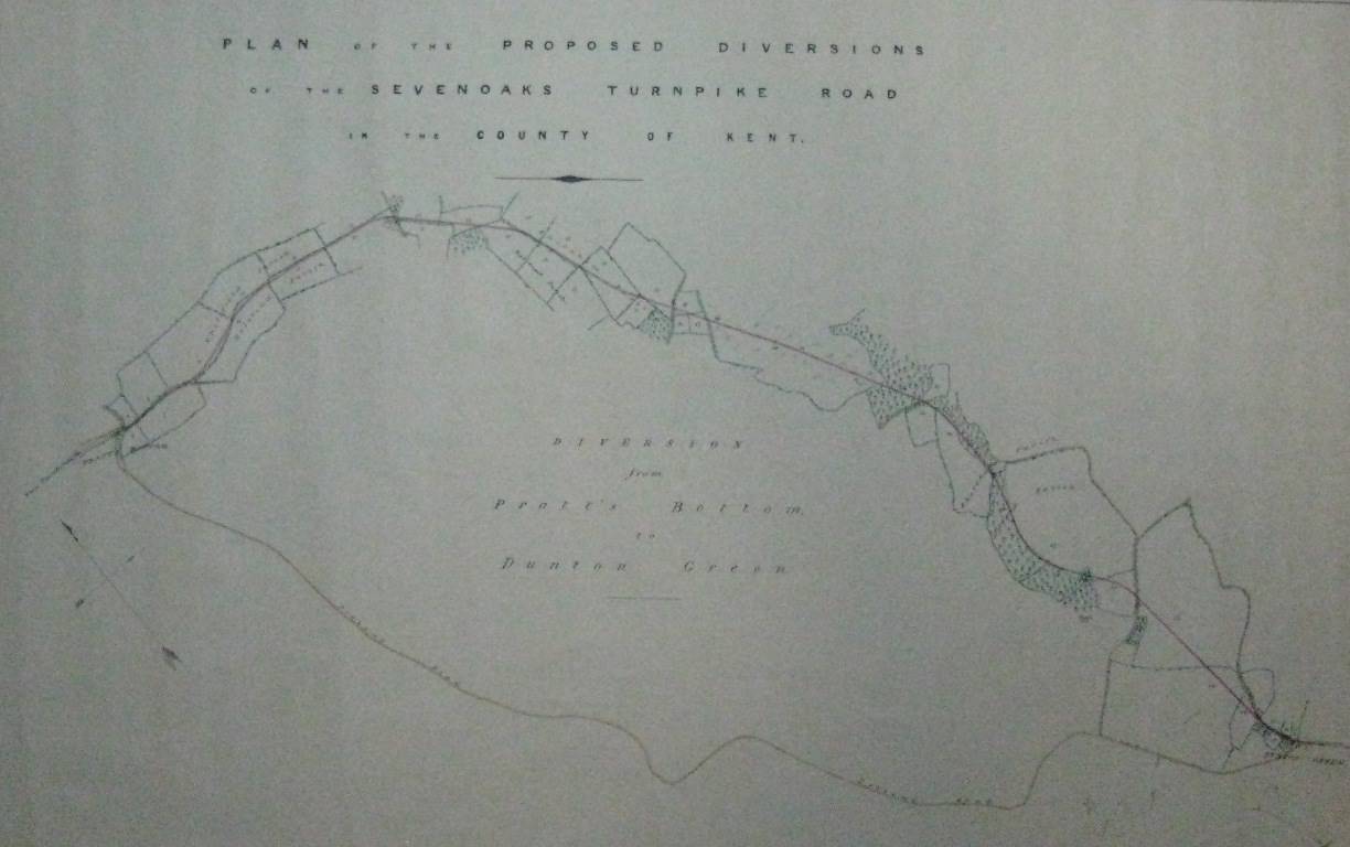 When the Turnpike was diverted in 1834 to run down Polhill rather than take the original route through Knockholt Village, one of the consequences was to cut off the access to the turnpike from Chevening House. This necessitated the provision of a branch road to provide a connection to the new route from the house and estate. This opened in 1835.